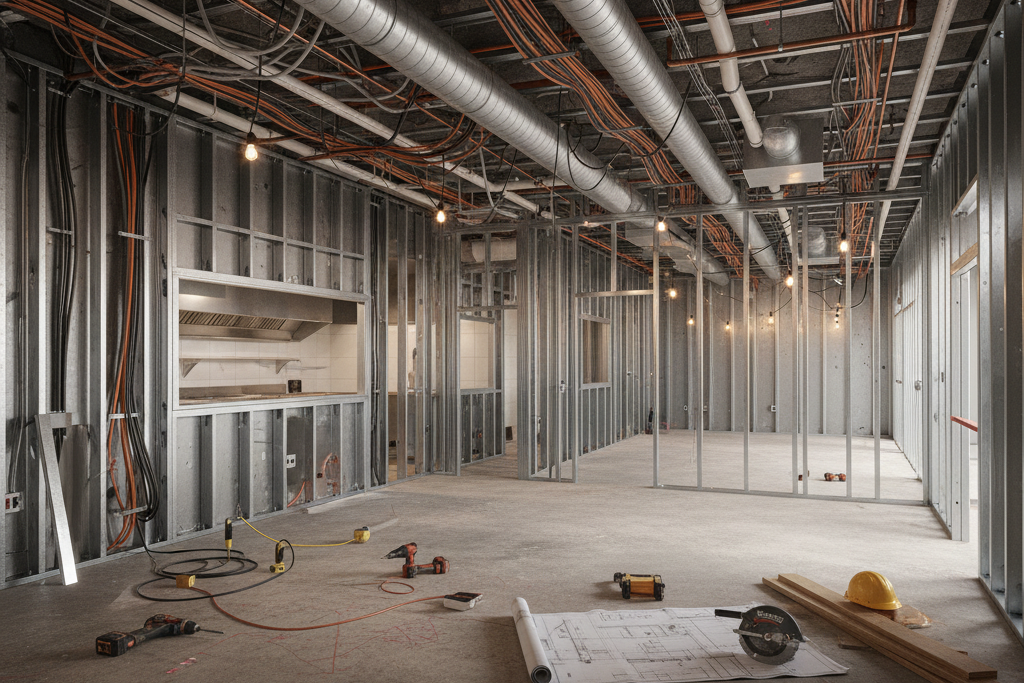 PARSA provides complete construction and renovation services tailored for commercial kitchens and restaurant spaces. Our team manages every stage of the build, from structural framing and insulation to flooring, wall finishes, and ceiling installation.