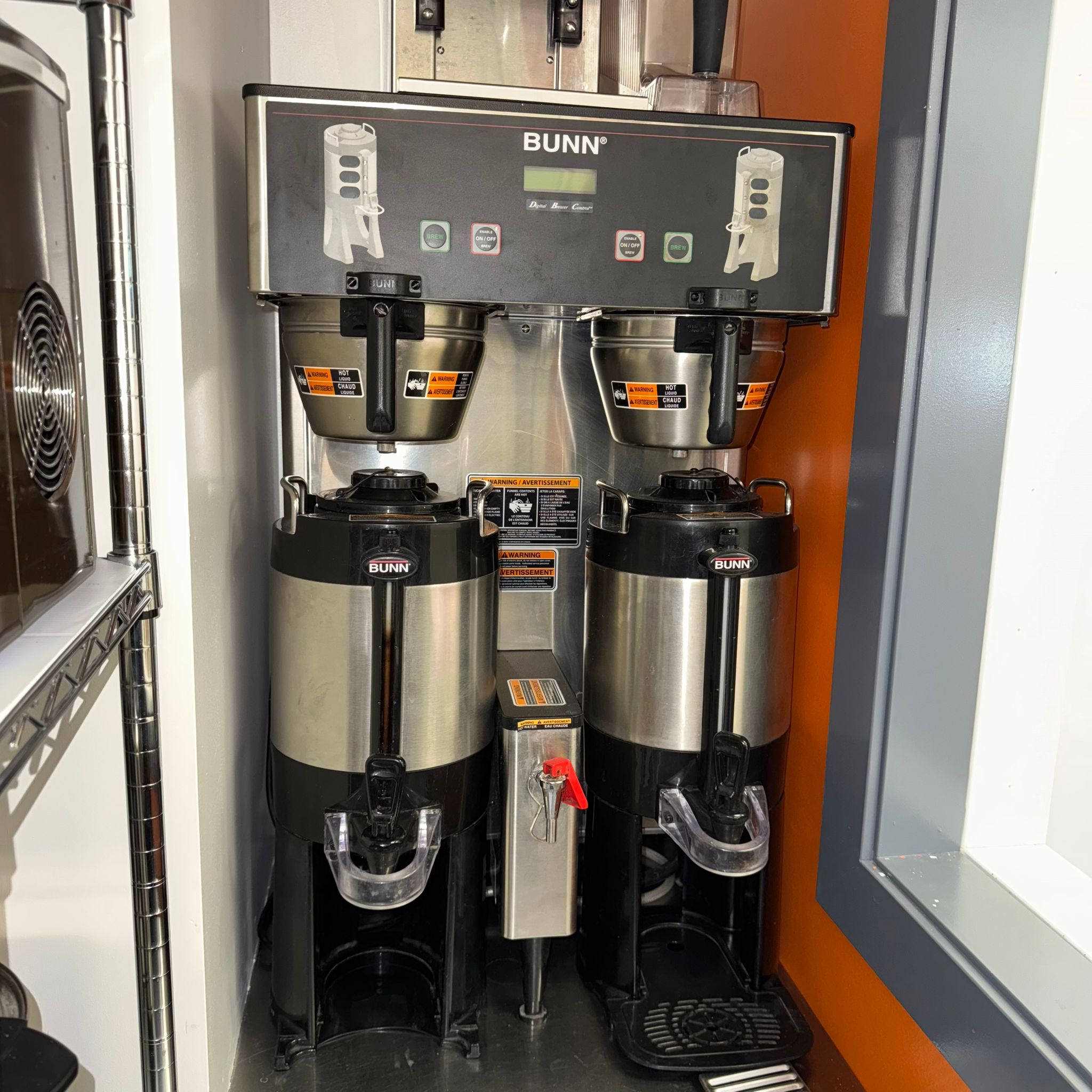The BUNN Dual-TF ThermoFresh is a high-volume, automatic twin coffee brewer engineered for consistent flavor extraction and operational efficiency. It features digital controls, pre-infusion, pulse brew, and energy-saving modes. The brewer works with BUNN’s ThermoFresh servers, eliminating the need for warmers while maintaining ideal serving temperature for hours.