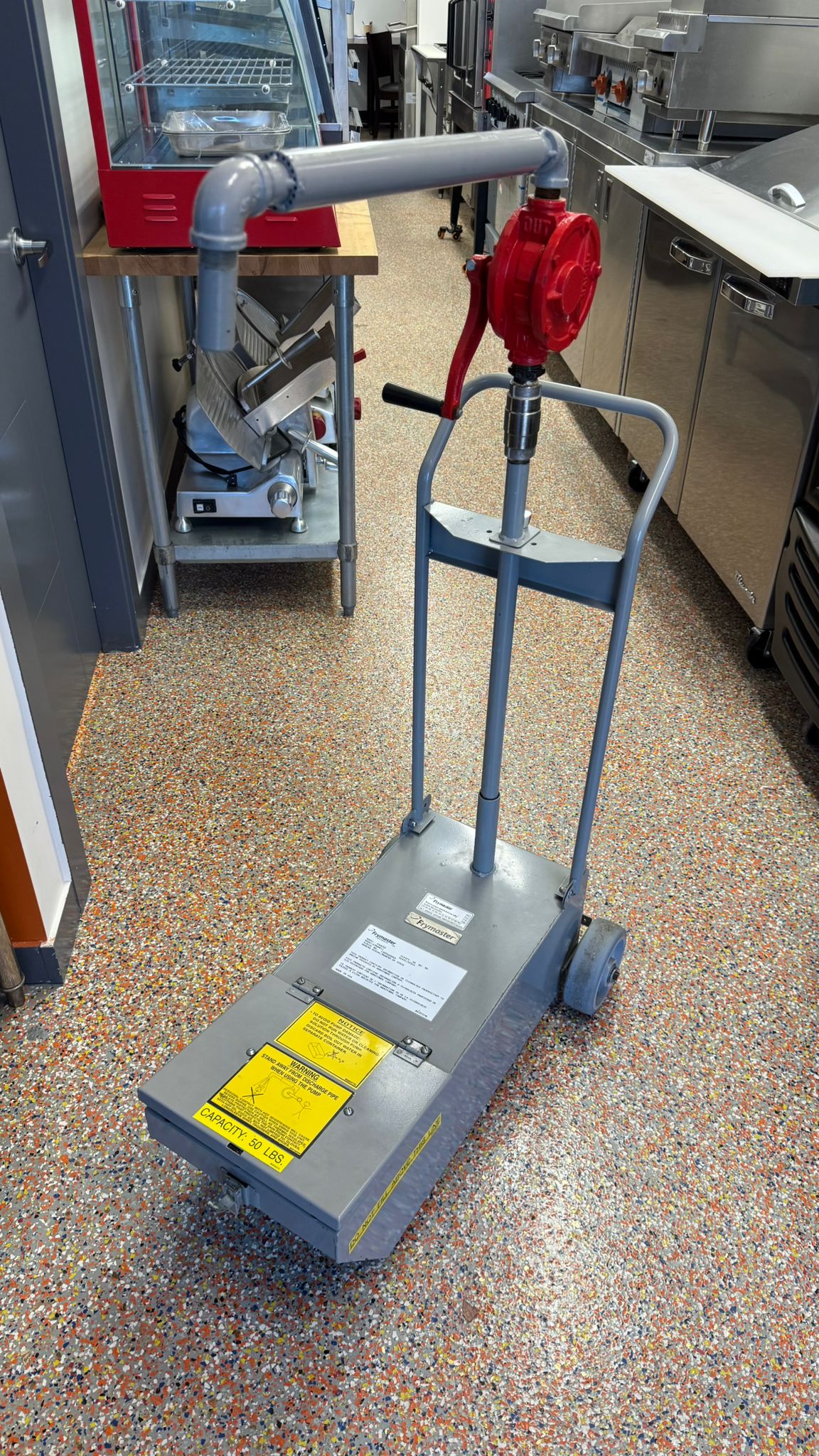 The Frymaster PSDU50 provides a safe and efficient solution for collecting and transporting used frying oil. Its low drain height fits under most commercial fryers, and the heavy-duty pump quickly transfers up to 50 lbs of oil. Built from durable steel with large casters, it ensures easy movement and reliable performance in any commercial kitchen.